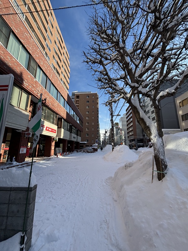 朝除雪が入る大きい通りや会社前は比較的キレイですが。